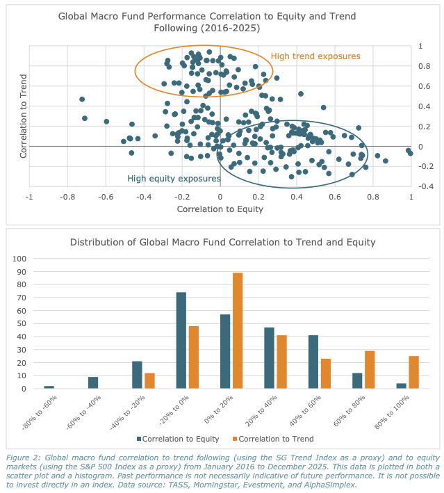 AlphaSimplex examines whether macro managers add value beyond plain equity and trend exposure. It argues some managers may still generate alpha, but survivorship and fee dispersion make the category look cleaner than it really is.
